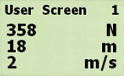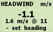 Im User Screen 1 werden Blickrichtung, Höhe und Windgeschwindigkeit angezeigt.