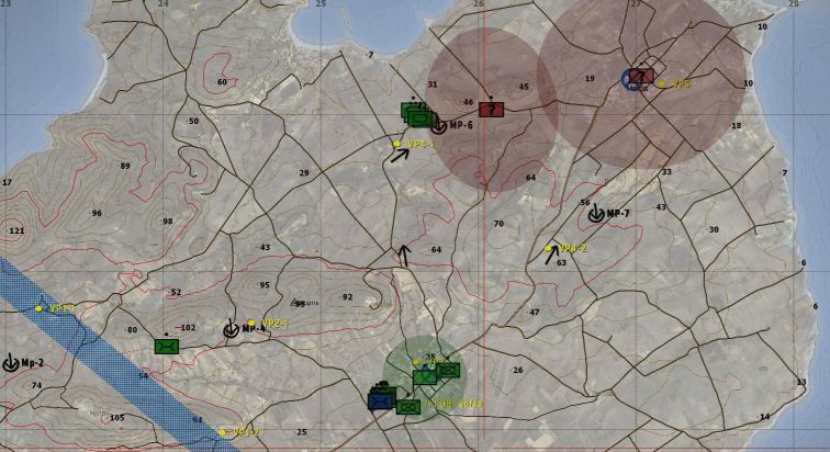 - Zu versorgende Einheit: Infanterie, Panzerzüge, CAS und ein SEBA Team hinter feindlichen Linien benötigen ganz unterschiedliche Dinge. Wichtige Fragen sind: Welche Einheit priorisiere ich bei der logistischen Ressourceneinteilung? Ein normales Light Platoon benötigt meist nicht die Geschwindigkeit luftgestützter Logistik, um Munitionsnachschub zu erhalten. Das SEBA Team ist hingegen vollständig angewiesen auf diese Unterstützung. Wie garantiere ich die schnelle Durchführung von Standardversorgungen? Der CAS freut sich, wenn die HEMTTs schnell zur Stelle sind. Falls möglich, positioniere die logistische Basis also in der Nähe des Flugfelds. Erstelle gedanklich einen entsprechenden Versorgungsplan.