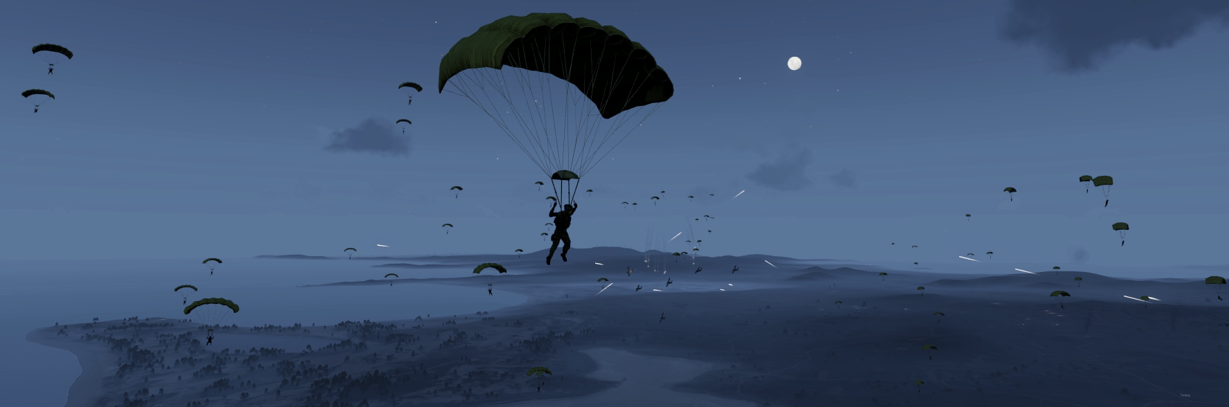 Für Spieler gilt im Falle des obigen Aufrufs, bei dem alle Default-Werte zur Anwendung kommen, dass alle Einheiten, die nicht in der Gruppe des Piloten sind, im Einsekundentakt aus dem Flugzeug geworfen werden, wobei ihnen ein “ACE_NonSteerableParachute” als Fallschirm hinzugefügt wird, der sich zwei Sekunden nach Verlassen des Flugzeugs öffnet. Vier Sekunden nachdem der Spieler den Boden erreicht hat, wird ihm dann sein Rucksack inklusive Inhalt zurück gegeben. Bei Änderung des "Autodrop:" Parameters auf false müssen die Spieler das Flugzeug eigenständig verlassen. Hier ist zu beachten, dass der Fallschirm erst nach Verlassen des Flugzeugs hinzugefügt wird. Wenn die Spieler eigenständig den Fallschirm öffnen sollen, so muss der "AutoOpen:" Parameter auf false gesetzt werden. Der letzte Parameter entscheidet prinzipiell nur, ob der Fallschirm lenkbar ist.