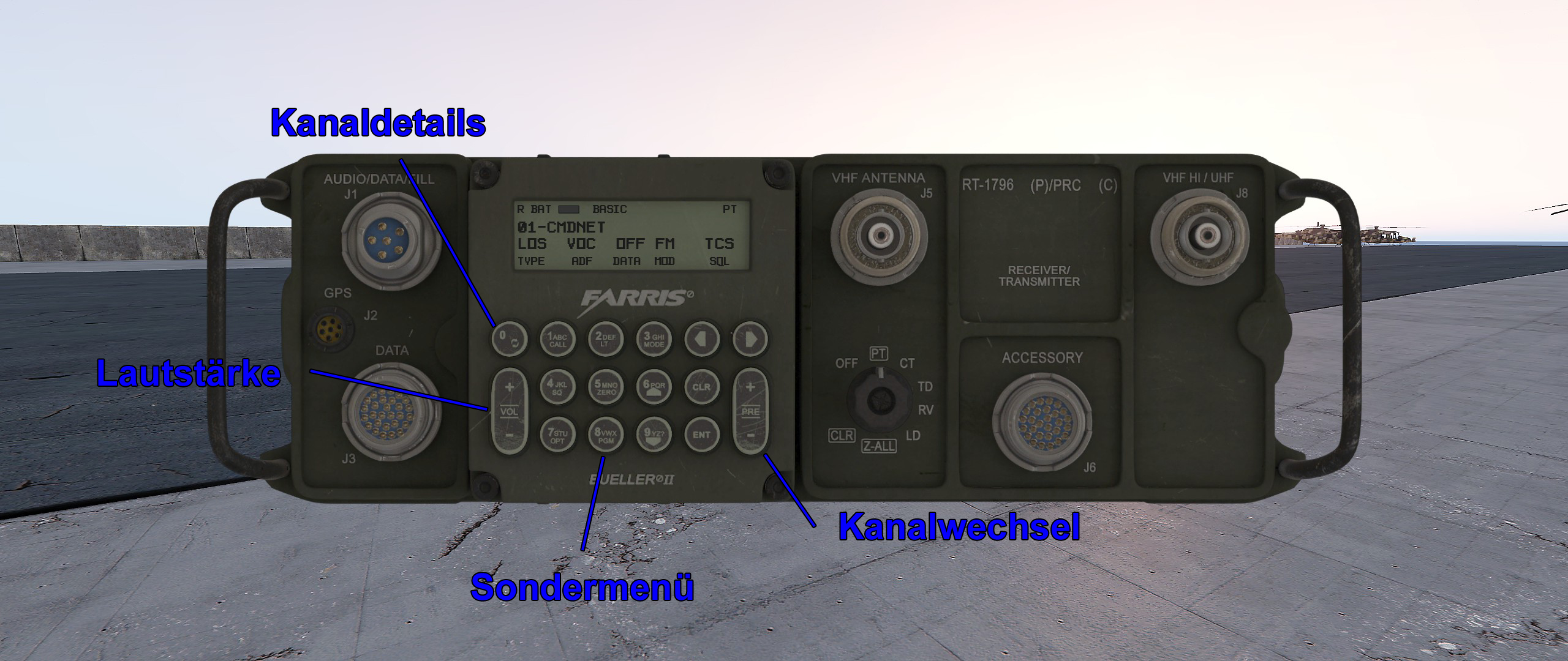Das PRC-117 ist das größte der bisher implementierten Funkgeräte. Es wiegt 5.4 Kilo und benötigt einen eigenen Rucksack, um überhaupt transportiert werden zu können. Dafür ist seine Reichweite mit ungefähr 20 Kilometern für jeden Helikopter oder Companylead ein Segen und erlaubt saubere Funksprüche aus der Basis hinaus ins Kampfgebiet.