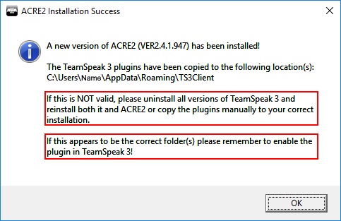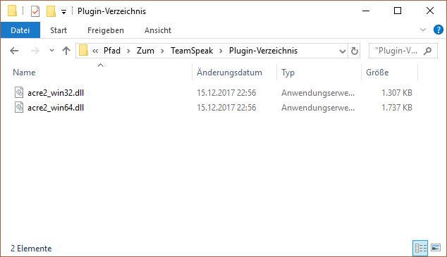 Seit einigen Versionen bietet ACRE die Möglichkeit, das Plugin selbst in das TeamSpeak Plugin-Verzeichnis zu verschieben.