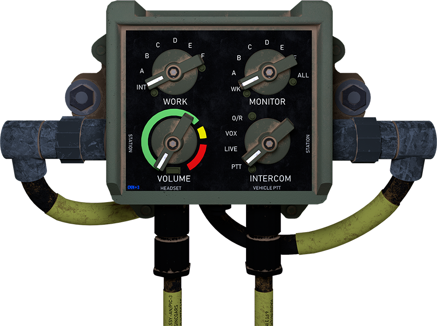 Das Intercom erfüllt den Zweck, die Kommunikation innerhalb von Fahrzeugen zu verbessern, indem diese über ein Fahrzeug-internes Funksystem durchgeführt wird. Neben einem extra Crew-Kanal exisitert auch ein Passagier- oder Pax-Kanal. Durch diese Aufteilung kann die Crew ungestört von taktischen Gesprächen im Laderaum weiterhin sicher ihr Fahrzeug bewegen.