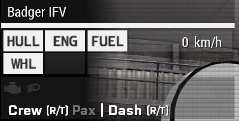 Sollte ein Spieler das Fahrzeug verlassen, wird er aus dem Intercom ausgeklinkt und muss sich dann wieder bei Einstieg neu verbinden. Ob und mit welchem Kanal ein Spieler verbunden ist und ob er dort nur empfangen oder auch senden kann, sieht man an einer zusätzlichen Anzeige in der Nähe der Fahrzeuginformationen.